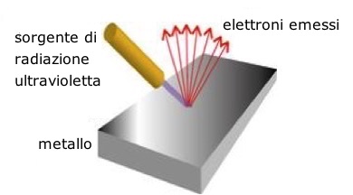 Un metallo, colpito da radiazione ultravioletta, emette elettroni solo se la frequenza della radiazione incidente supera una frequenza di soglia, caratteristica del metallo: